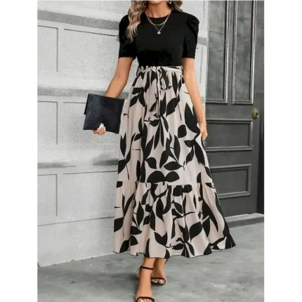 Chiffon Ethnic Floral Print Half Sleeve V Neck Midi Dress