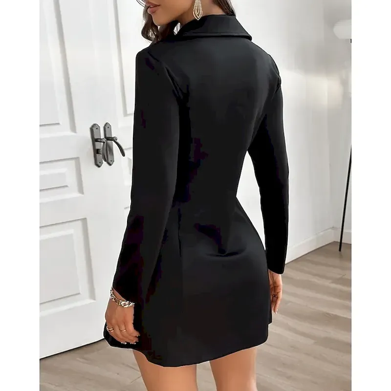 – Stay elegant and stylish this fall with our polyester mini dress- Featuring a chic solid color design with a V neck- Keep cozy with long sleeves and the option to adjust the neckline with a zipper or buttons. – Perfect for any occasion, this dress is designed for women who want to look and feel their best.