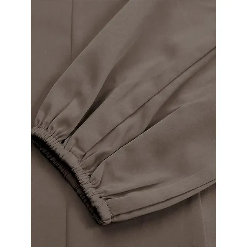 [Design Highlights]: The abaya’s long sleeves are gently puffed, adding a touch of grace to the overall look. Subtle vertical seam details enhance the structure and elongate the figure for an elegant appearance. A crew neckline offers classic style, while ruched elements add a modern twist.