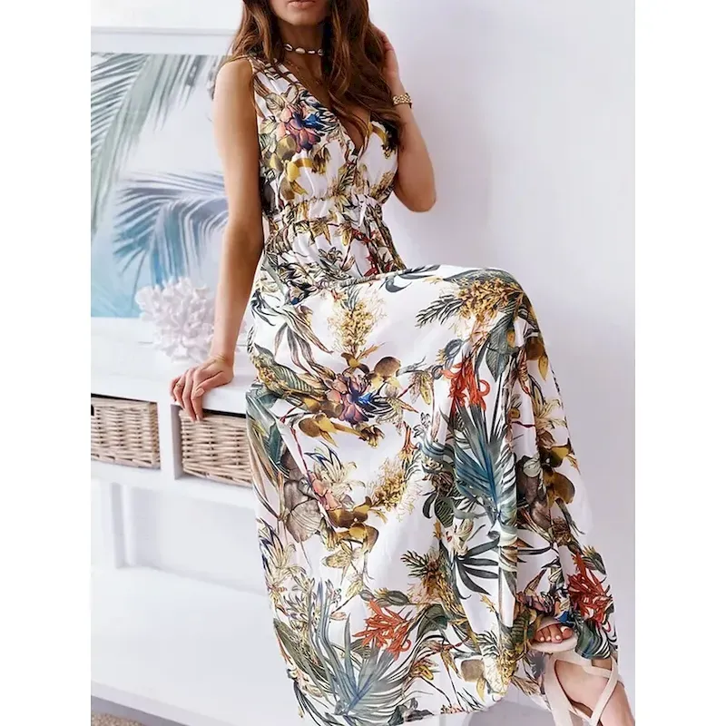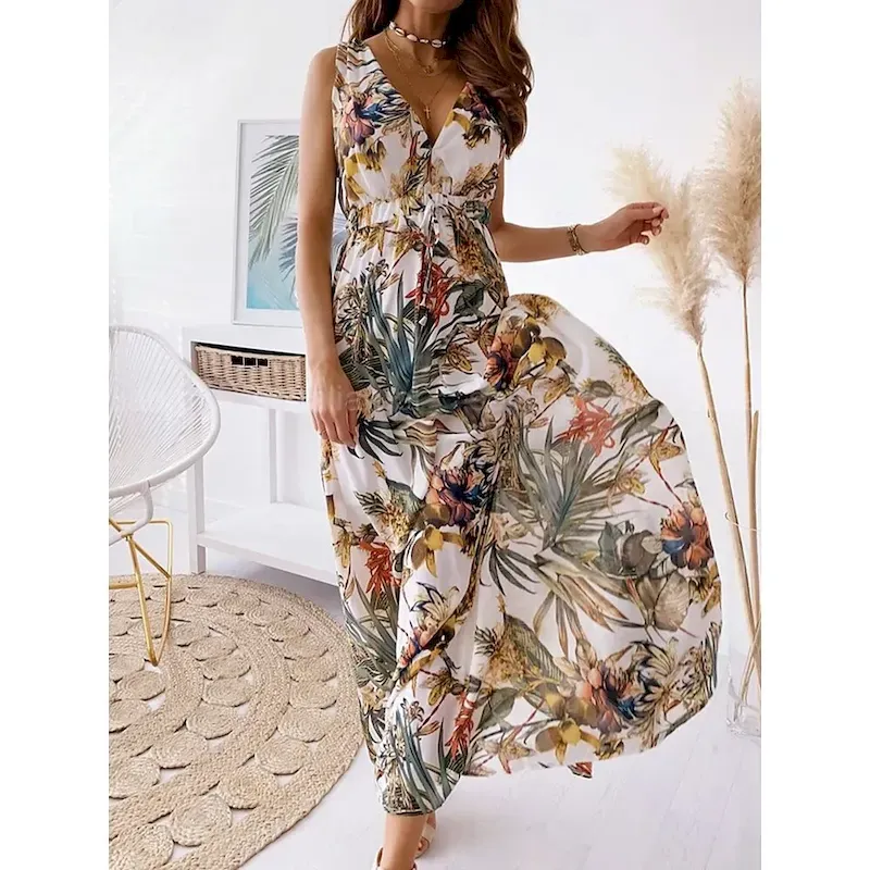 Women’s Maxi Dress Casual Dress Stylish Casual Vacation Casual Daily Regular Fit Graphic Sleeveless V Neck Black White Blue Green Summer Spring
