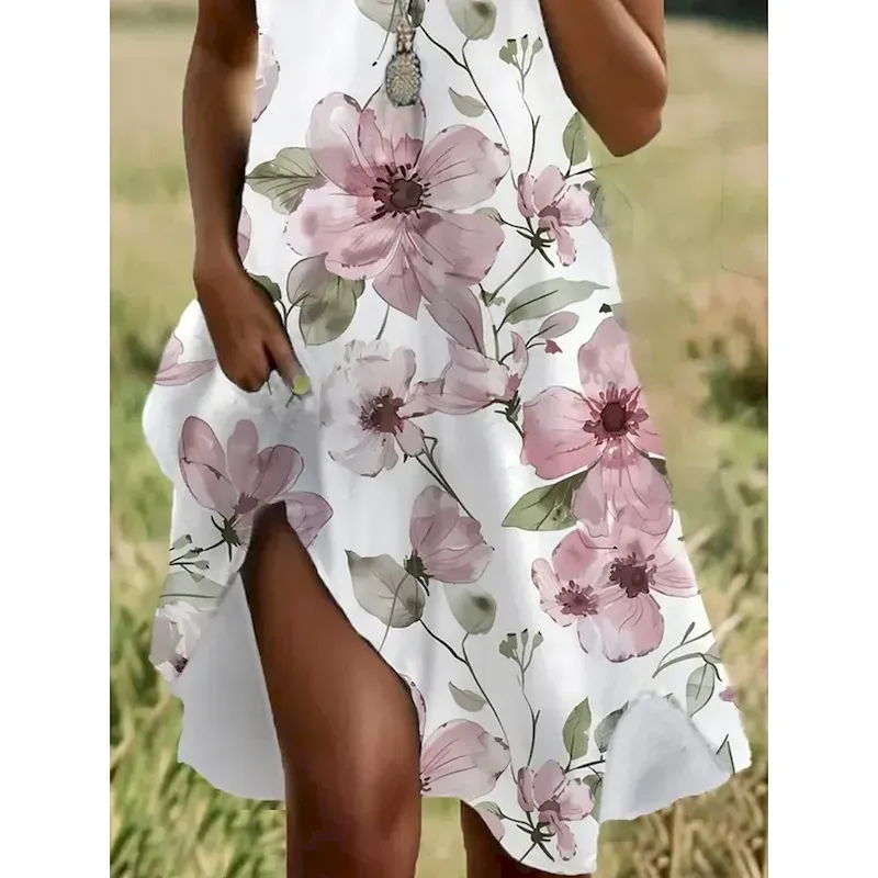 Women’s Mini Dress A Line DressCasual Dress T Shirt Dress Tee Dress Sundress Stylish Casual Vacation Casual Daily Regular Fit Floral Graphic Short Sleeve Crew Neck Light Pink Summer