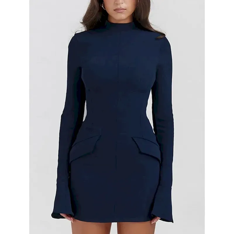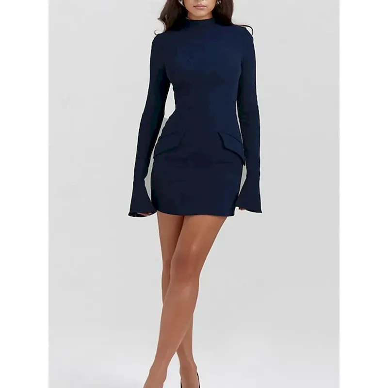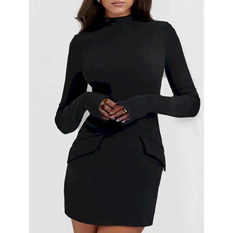 1.Dresses Type: Casual Dress Sheath Dress – Sheath dress is a fitted, straight cut dress. This type of dresses look a little bit formal.,2.Fabric: Polyester3.Gender: Women’s4.Design: Pocket5.Occasion: Party – Fashion dress when attending the party., Daily6.Dress Length Type: Mini Dress7.Neckline: Crew Neck – Classic design makes people more lovely and young.,8.Sleeve Length: Long Sleeve9.Season: Spring Fall Winter