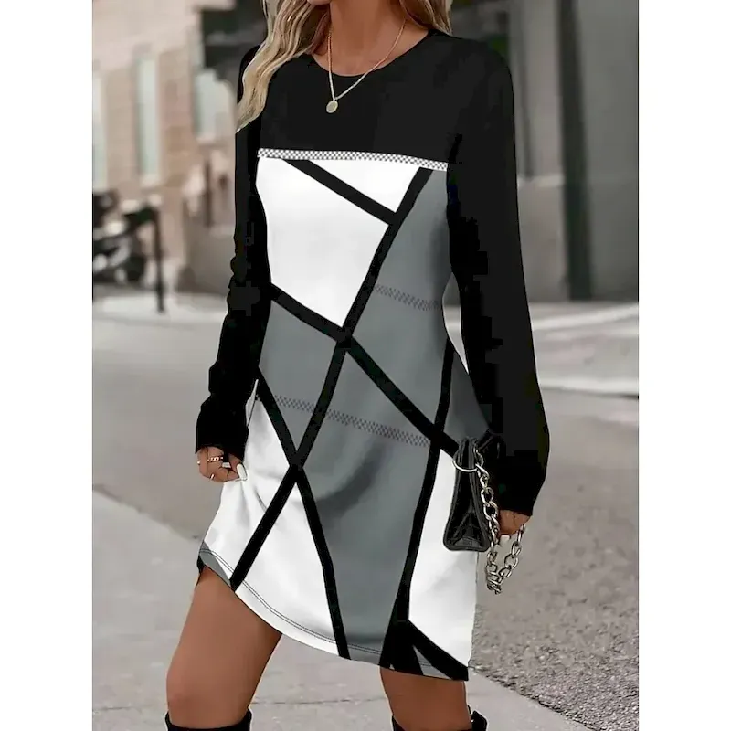 Women’s Mini Dress T Shirt Dress Tee Dress Shift Dress Vacation Casual Daily Holiday Date Regular Fit Graphic Geometric Long Sleeve Crew Neck Black Spring Fall Winter