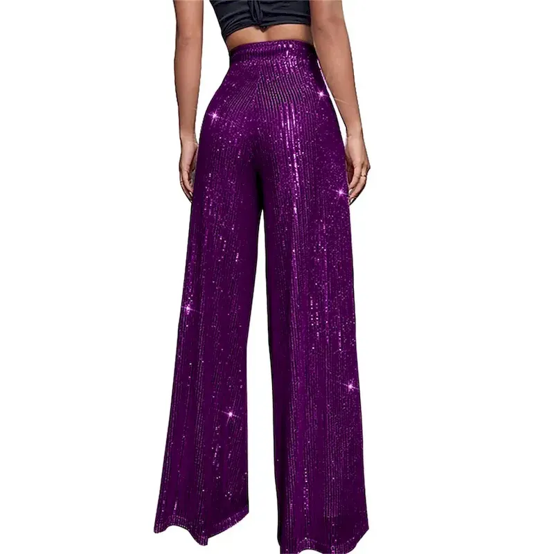 [Fabric]: These women’s wide-leg pants are skillfully crafted from high-quality polyester, offering a lightweight feel with a micro-elastic texture that ensures comfort and durability throughout the day and night. The premium fabric adds a luxurious touch to the overall design, making it perfect for showcasing elegant, sparkling sequins.[Style]: Tailored for a regular fit, these pants feature a high waist and a wide-leg cut, translating to a flattering silhouette that highlights the waistline while providing ease of movement. The full-length design serves as a versatile option for various dressing occasions.[Design Highlights]: The standout design element of these pants is the dazzling sequin detailing that artfully catches and reflects light, delivering a captivating sparkle. This, combined with the sophisticated claret color, makes the pants a striking choice for making a lasting impression. The seamless integration of plain patterns enhances the elegance without overshadowing the sequins.[Occasions]: These wide-leg sequin pants are perfectly suited for a variety of events, from street outings and club nights to formal parties and evening occasions. Paired with high heels and statement jewelry, they provide a glamorous look appropriate for any special celebration or night out.[Size Range]: Available in a comprehensive range of sizes from S to 3XL, catering to diverse body types and preferences, ensuring that every wearer can find their perfect fit for both style and comfort.OK
