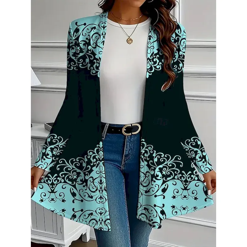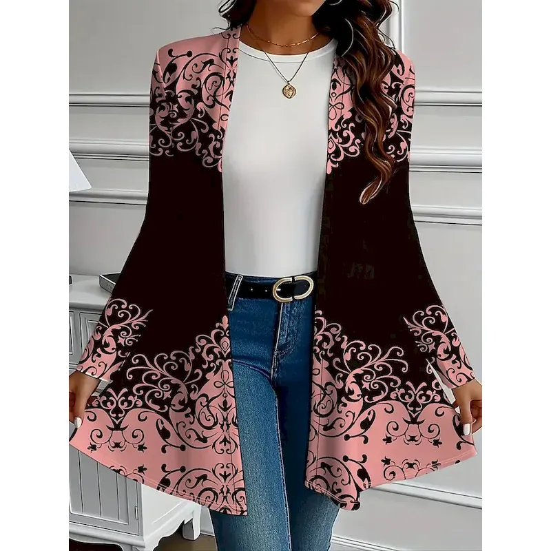Women’s Winter Coat Trench Coat Lightweight Comfortable Print Open Front Vintage Fashion Casual Floral Vacation Casual Long Collarless Regular Fit Long Sleeve Outerwear White Pink Blue Spring Fall